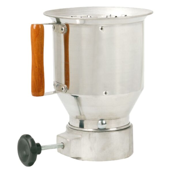 Confeccionados em alumínio fundido na base e alumínio laminado no corpo. Possuem uma manipula em material plástico resistente ao calor para ajuste do abafa chamas ao escapamento. Possuem duas peneiras internamente que servem para conter uma possível chama proveniente do cano de descarga do veículo e uma alça de madeira para facilitar o transporte.