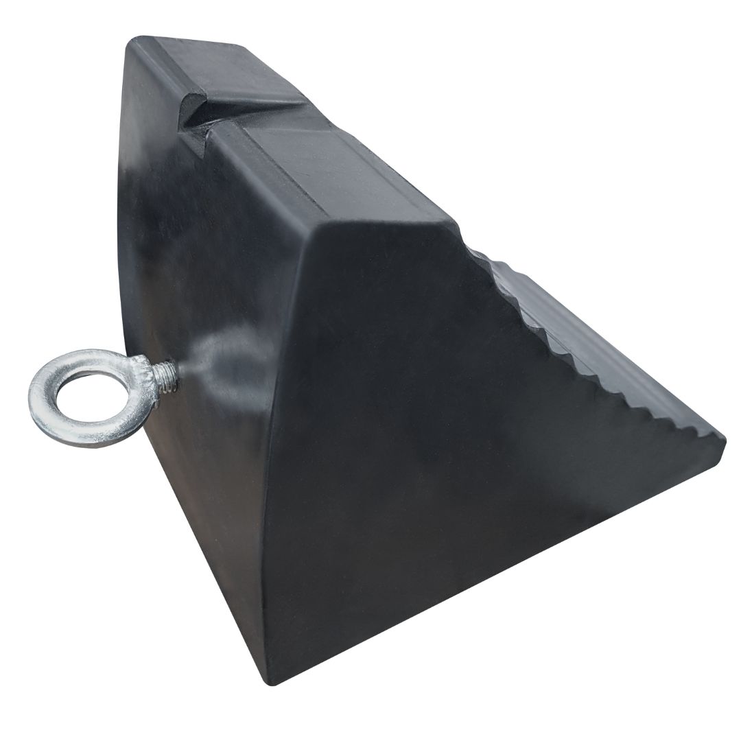 Calço confeccionado em borracha vulcanizada, possui olhal em aço para uso de correntes.
