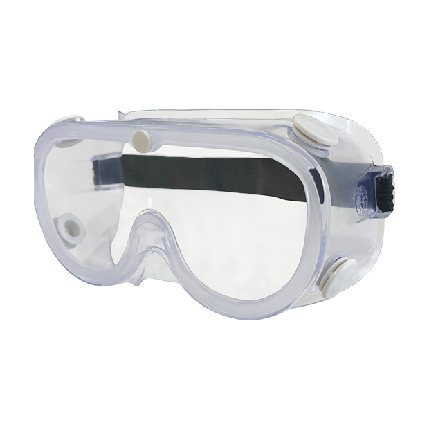 Armação confeccionada em PVC, com lente em policarbonato incolor, possui sistema de ventilação indireta através de 04 válvulas laterais, com elástico para ajuste ao rosto do usuário.