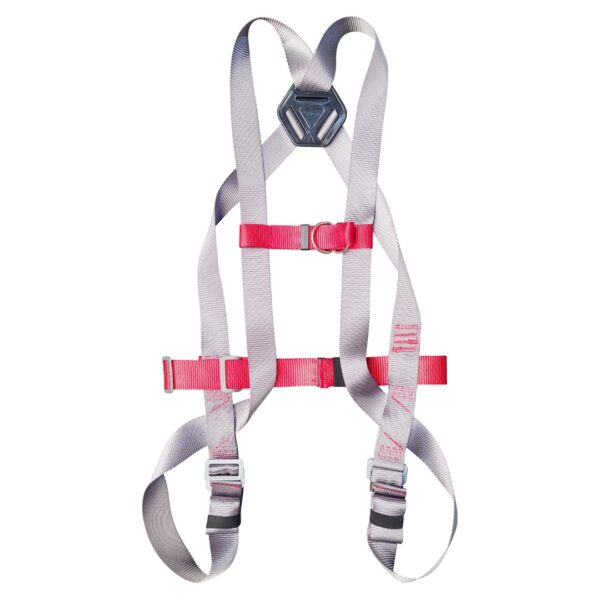 Confeccionado em fita de poliéster de 45mm e fita secundária de poliéster de 35 mm. Possui 1 ponto de conexão sendo uma meiaargola em “D” dorsal, confeccionada em aço de alta resistência para retenção de queda. Possui três fivelas duplas sem pino confeccionadas em aço estampado para ajuste, sendo uma na cintura e duas nas pernas, uma fivela simples confeccionada em aço e um passador plástico para ajuste peitoral. Produto certificado pelo INMETRO.