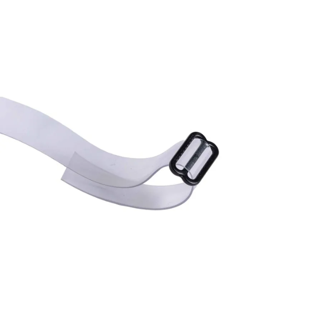 Jugular confeccionada em PVC cristal com 13mm de largura e ajuste através de passador plástico.