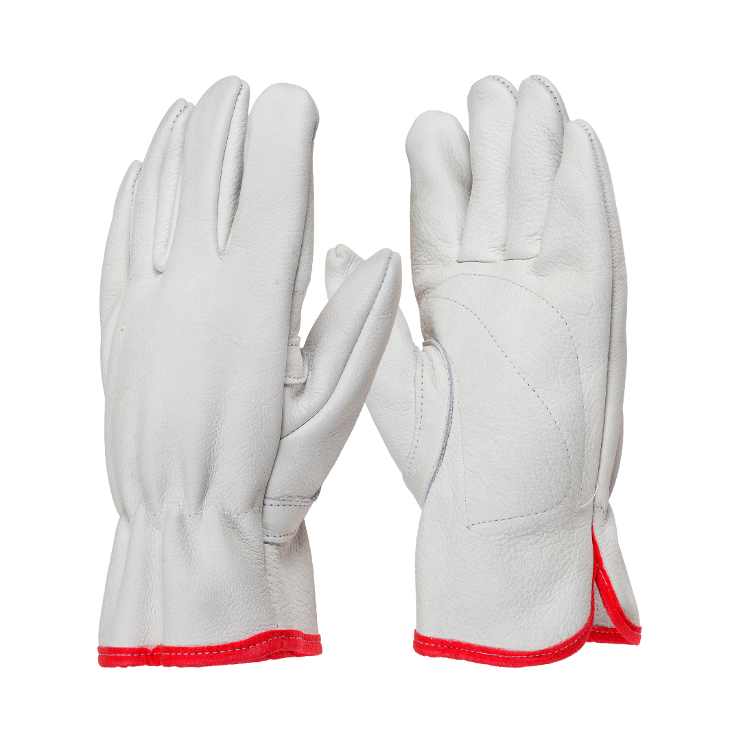 Confeccionada somente em vaqueta, modelos de luvas possuem viés no punho, e com elástico no dorso.