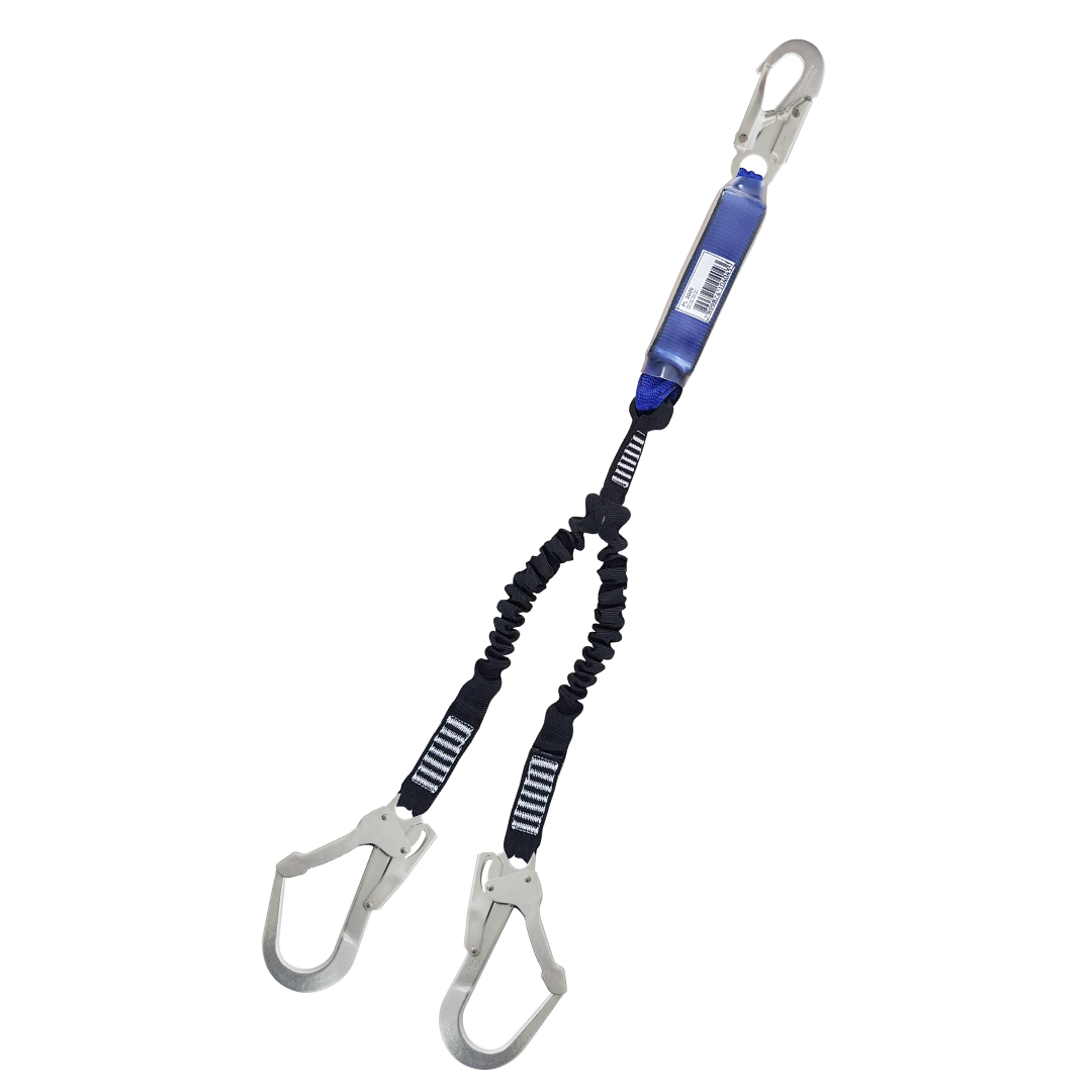 Confeccionado em fita de poliéster com elástico interno, com 01 conector com abertura de 21mm, 01 absorvedor de energia e 02 conectores com abertura de 50mm.